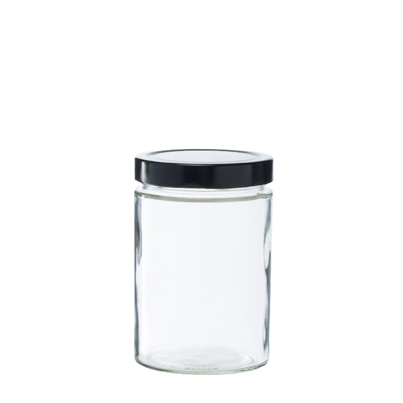 Bocal en verre pour épicerie en vrac Anastasia MM. Dimensions hors-tout: diamètre 85 mm x hauteur 128 mm, poids 322g, contenance 580 ml. Fabriqué en Italie.