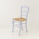 Familière s'il en est, voici la véritable chaise en paille de campagne telle qu'elle a toujours été produite depuis des lustres. Robuste, confortable, cette madeleine de Proust du siège est en plus locale, l'une des dernières à être encore fabriquée artisanalement en France. Structure en hêtre massif, assise en paille de seigle bordée d'un cache-paille sur l'avant. Nous la proposons aujourd'hui dans toute une gamme de cires et de laques, ici en laqué satiné bleu "dargée" NCS 1015-R80B. Haut 88 cm, larg 41 cm, prof 47 cm, hauteur assise 46 cm, poids 4.8 kg. Elle est équipé de patins double-face facilement remplaçables et reversibles (une face en feutre pour sols durs, une face en PEHD pour tapis-moquettes).