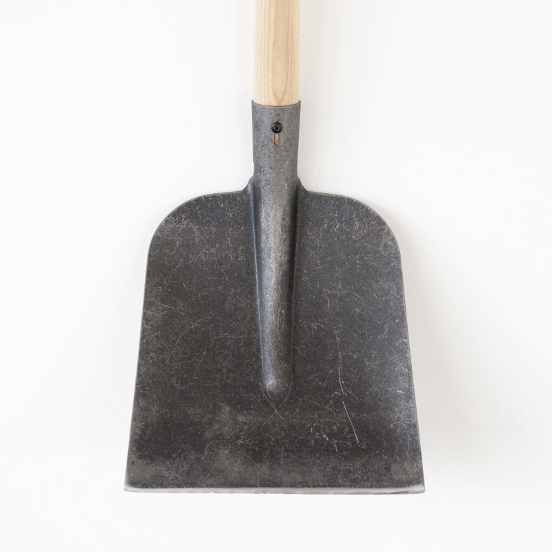 Ici, la pelle carrée. Sa tôle de 2mm est un bon compromis entre légèreté et robustesse. Neige, terre, gravier, c'est la pelle à tout faire. Sa forme carrée vous laissera un travail bien propre, et vous apprécierez la bonne prise de main de son manche béquille (enT).