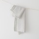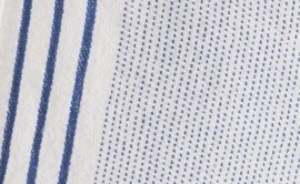 Le torchon en lin lavé Maya est orné de trois rayures de couleur de part et d'autre du torchon et d'un petit motif en pointillé coordonné aux rayures, sur fond blanc. Une présentation originale mais qui reste classique, la marque de fabrique de la maison Charvet Editions. Le lavage préalable du lin en usine lui confère une belle douceur au sortir du paquet, mais aussi un aspect qui peut être perçu comme un peu froissé. Certains l'utiliseront tel quel, d'autres préfèreront lui donner un petit coup de fer à repasser, c'est comme on veut...